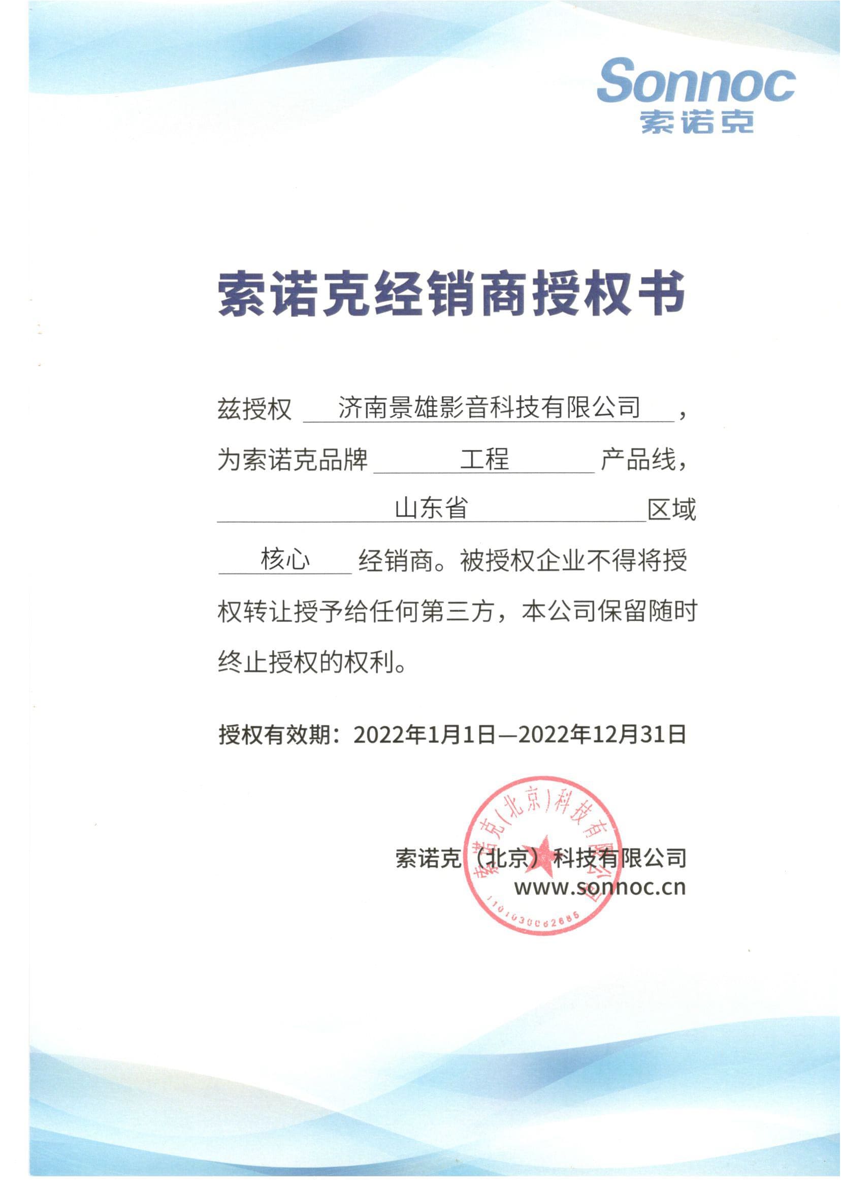 索諾克品牌授權書